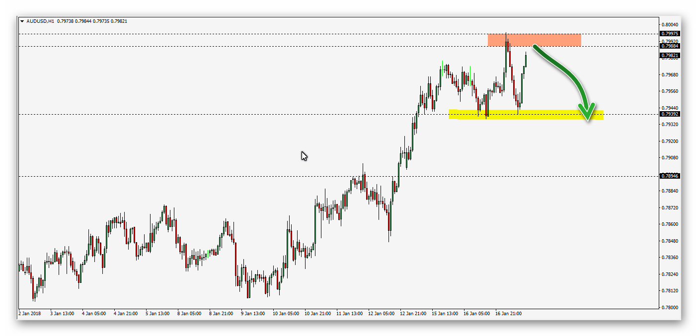 يتداول زوج الدولار الاسترالى مقابل الدولار الامريكى حيث شهد موجة قصيرة من الصعود متوقع أن تستمر حتى مستويات العرض القادة على الفاصل الزمنى للساعة الممتدة بين مستويات 0.7988 و 0.7997 ثم الهبوط من هذه المستويات لكن يفضل انتظار سلوك سعرى انعكاسى من مناطق العرض لتاكيد الهبوط مع ايقاف خسارة عند مستويات 0.7800 .