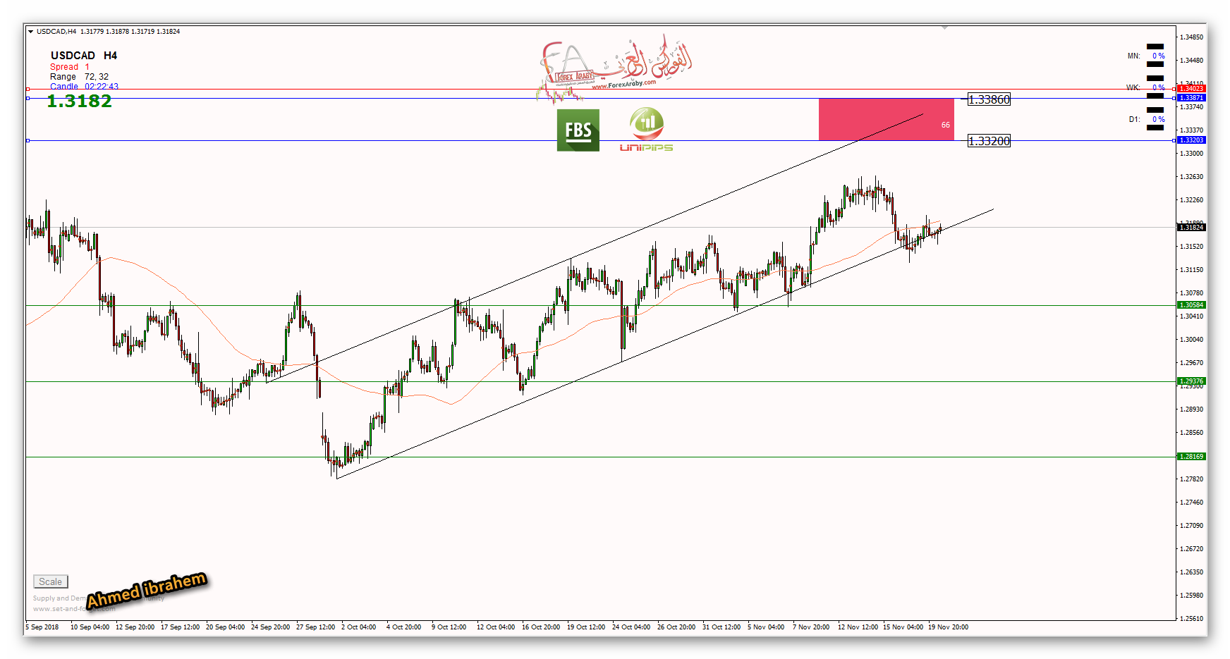 الزوج يتداول حاليا عند خط الترند الصاعد علي فريم الأربع ساعات بعد الهبوط من مستويات المقاومة عند 1.3225 ولم يتم الكسر حتي الأن لخط الترند