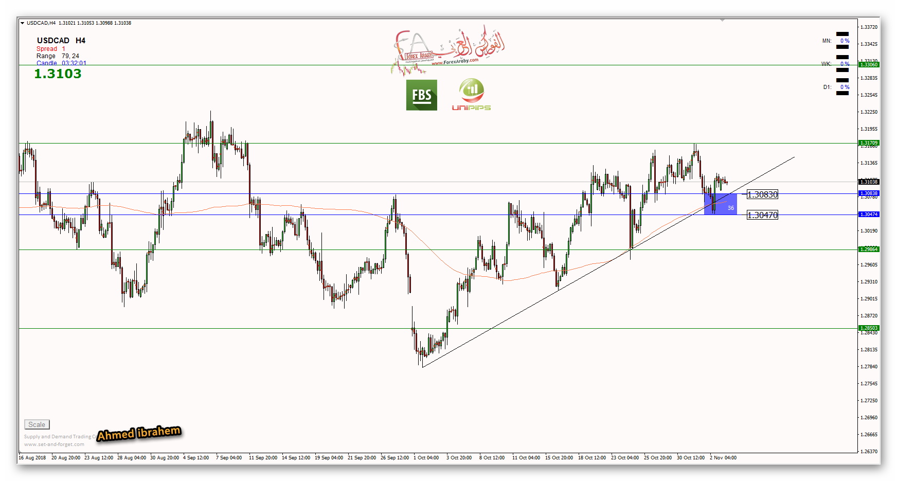 الزوج يتداول بالقرب من مستويات 1.3085 والتي تمثل نقطة محورية لزوج الدولار كندي والمتوقع الصعود منها بعد لمس الترند الصاعد وظهور برايس أكشن علي فريم الاربع ساعات يدعم الاتجاه الصاعد ونستهدف مستويات 1.3300