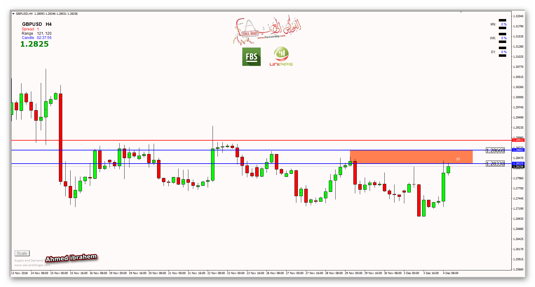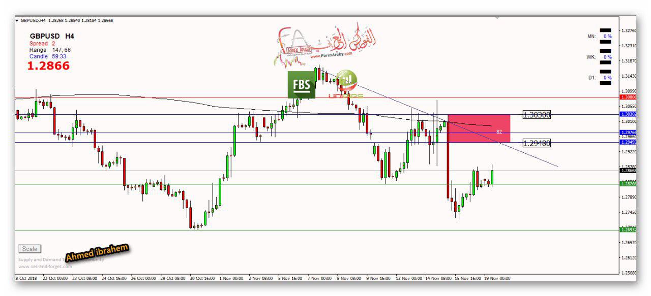 والتي تمثل مستويات بيع جيدة للزوج مع الاتجاه الحالي ونستهدف مستويات 1.2825 كهدف اول والهدف الثاني عند مستويات 1.2690