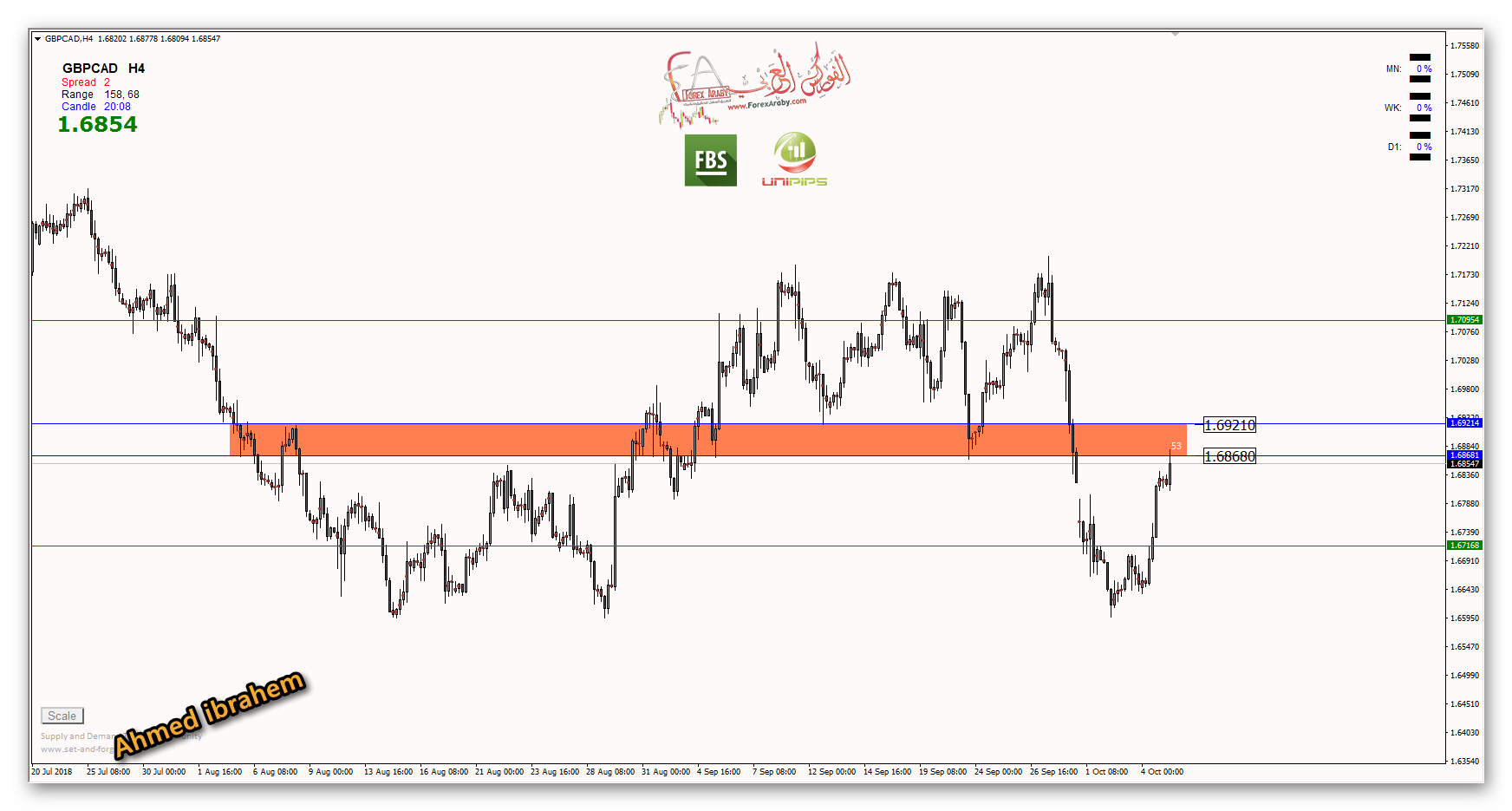 ننتظر وصول الزوج لمستويات الشراء عند 1.6880 حتي مستويات 1.6920 والتي