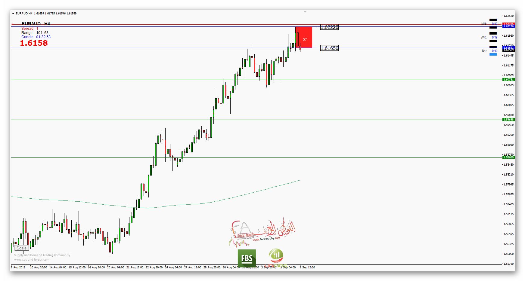 مناطق العرض للزوج من مستويات 1.6165 حتي مستويات 1.6225