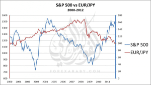 كيفية استخدام زوج EUR/JPY كمؤشر رئيسي للأسهم على الرغم من أن الارتباط غير كامل،