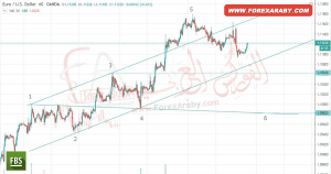 بالنظر الي الرسم البياني اليومي لزوج اليورو مقابل الدولار فاصل زمني ساعة نجد ان الزوج يتداول ضمن تركيبه و لفي ويف في شكل قناه سعريه صاعده حيث تم تحقيق اختراق كاذب للضلع العلوي و من ثم العودة مره اخري لداخل النمط و هو ما يدعم توقعنا بتوجه الزوج نحو الهبوط لاستهداف مستويات ١.١٠٦٥ و ان استطاع كسرها يستهدف الهبوط نحو ١.٠٩٧٦ لاستكمال النقطة ٦ للنموذج كما هو موضح الشكل الإغلاق شمعتين تداول ساعه فوق مستوي 1.1140 يلغي السيناريو المتوقع للتداول.
