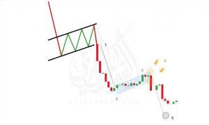 تتشكل سارية العلم عند انخفاض سعر الذعر العمودي تقريبًا حيث يصاب الثيران بصدمة من البائعين ، ثم ارتداد له خطوط اتجاه علوية وسفلية متوازية ، والتي تشكل العلم.